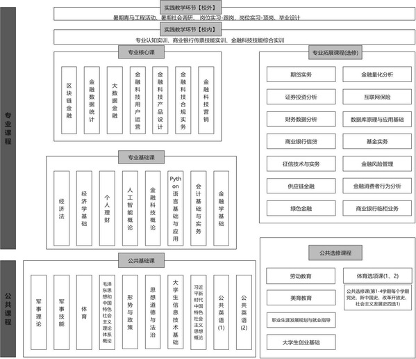 开设经济学基础、金融学基础、会计基础与实务、个人理财、经济法、人工智能概论、Python语言基础与应用、金融科技概论等8门课程。