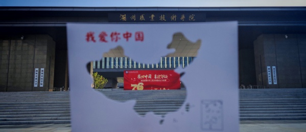 与此同时,“框湖职美景,映青春告白”国庆透卡创意打卡活动也在青春洋溢的校园里热烈展开。同学们手持特制的中国地图镂空透卡,漫步于崭新的校区,寻找最佳角度。他们将透卡对准校园的标志性建筑、葱郁草木或蓝天白云,镜头之下,祖国版图的轮廓与身边熟悉的美景巧妙重叠、相映成趣。一方小小的卡片,框取的是校园一隅,映照的却是对祖国壮丽河山的无限深情。同学们用这种富有创意的方式,将个人学习成长的小环境与国家发展的大舞台紧密相连,实现了“以方寸之纸,框盛景;以赤子之心,寄国情”的情感共鸣。一张张充满巧思的打卡照片,是经管学子对祖国最直观、最青春的告白,展现了他们以时代为卷、以奋斗为笔,将个人理想融入国家发展伟业的决心。
